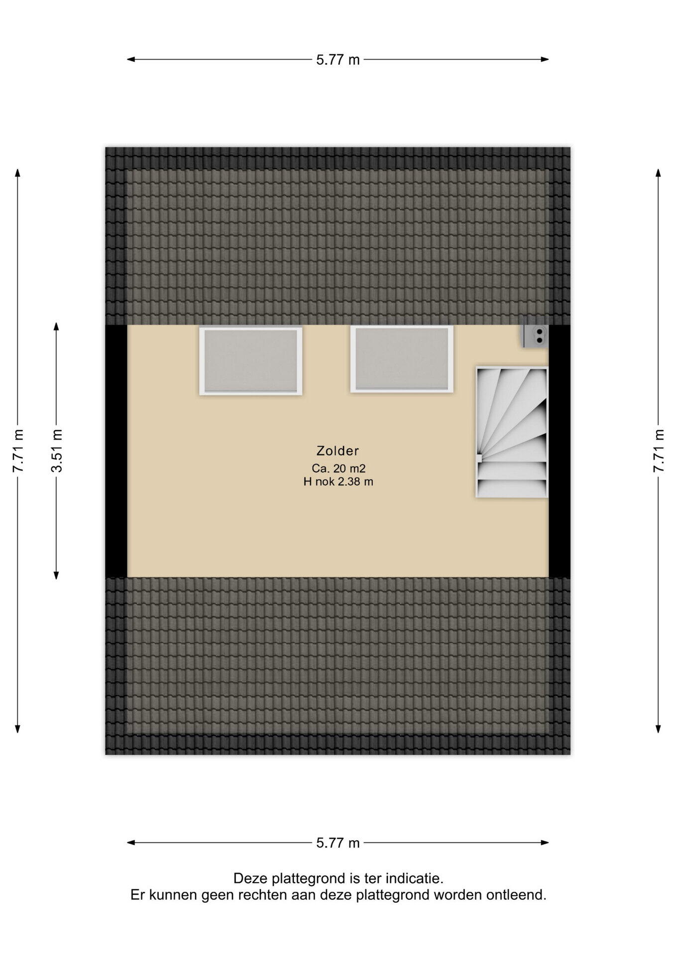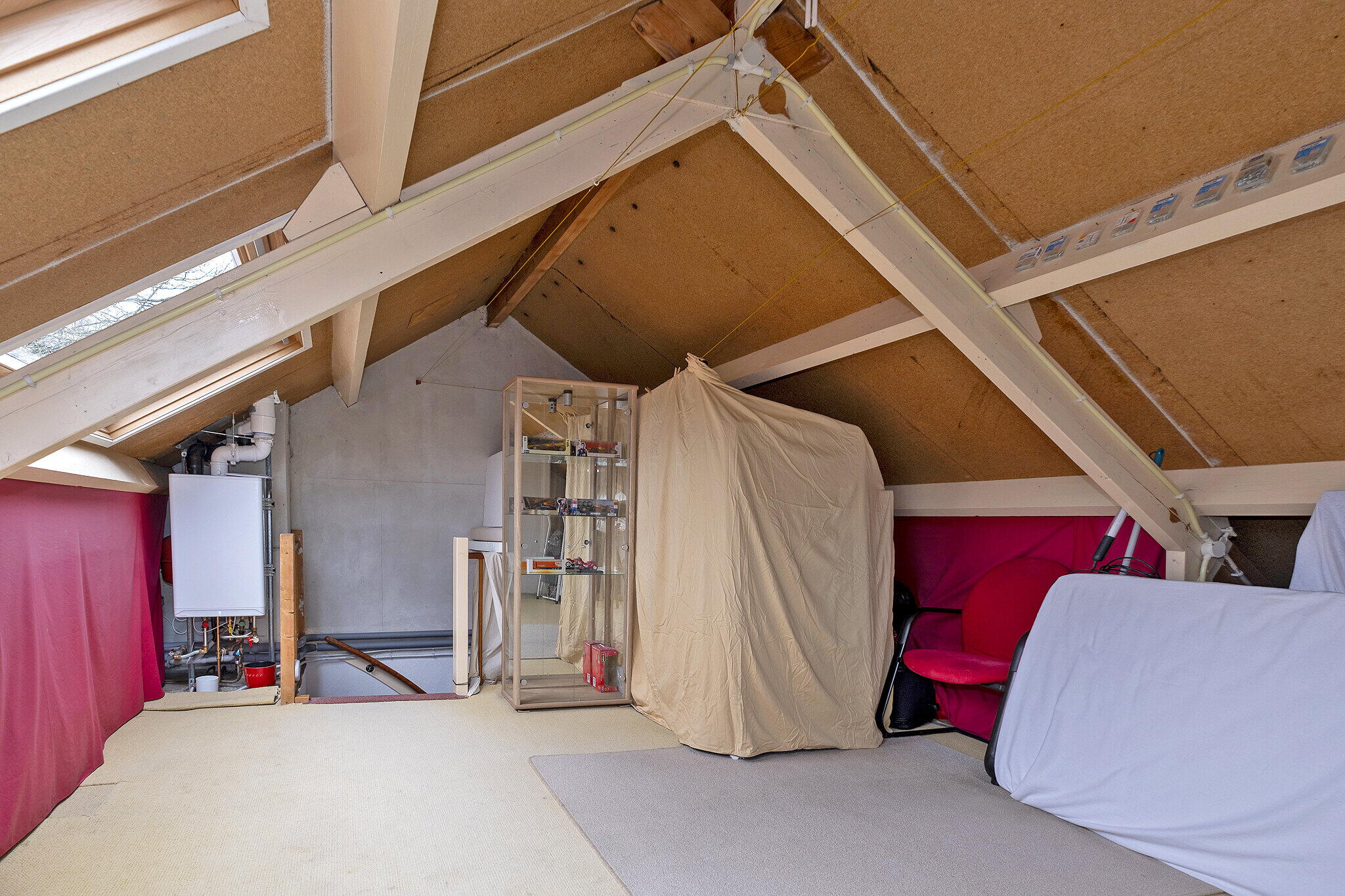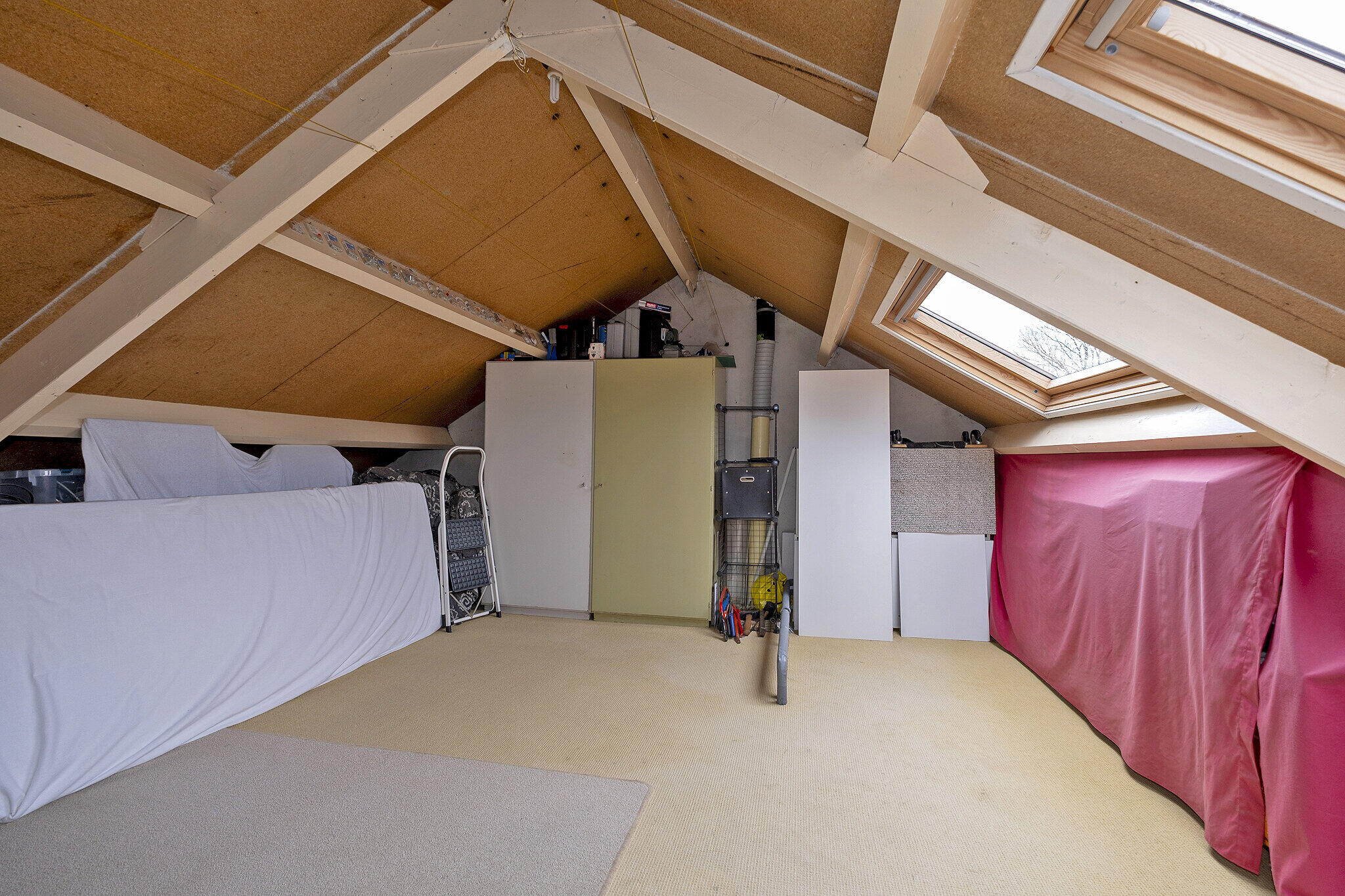 Door middel van een vaste trap is de zolder (ca. 20m²) te bereiken. Hier staat de CV opgesteld en er zijn twee dakramen aanwezig waardoor er eenvoudig een vierde slaapkamer gerealiseerd kan worden.