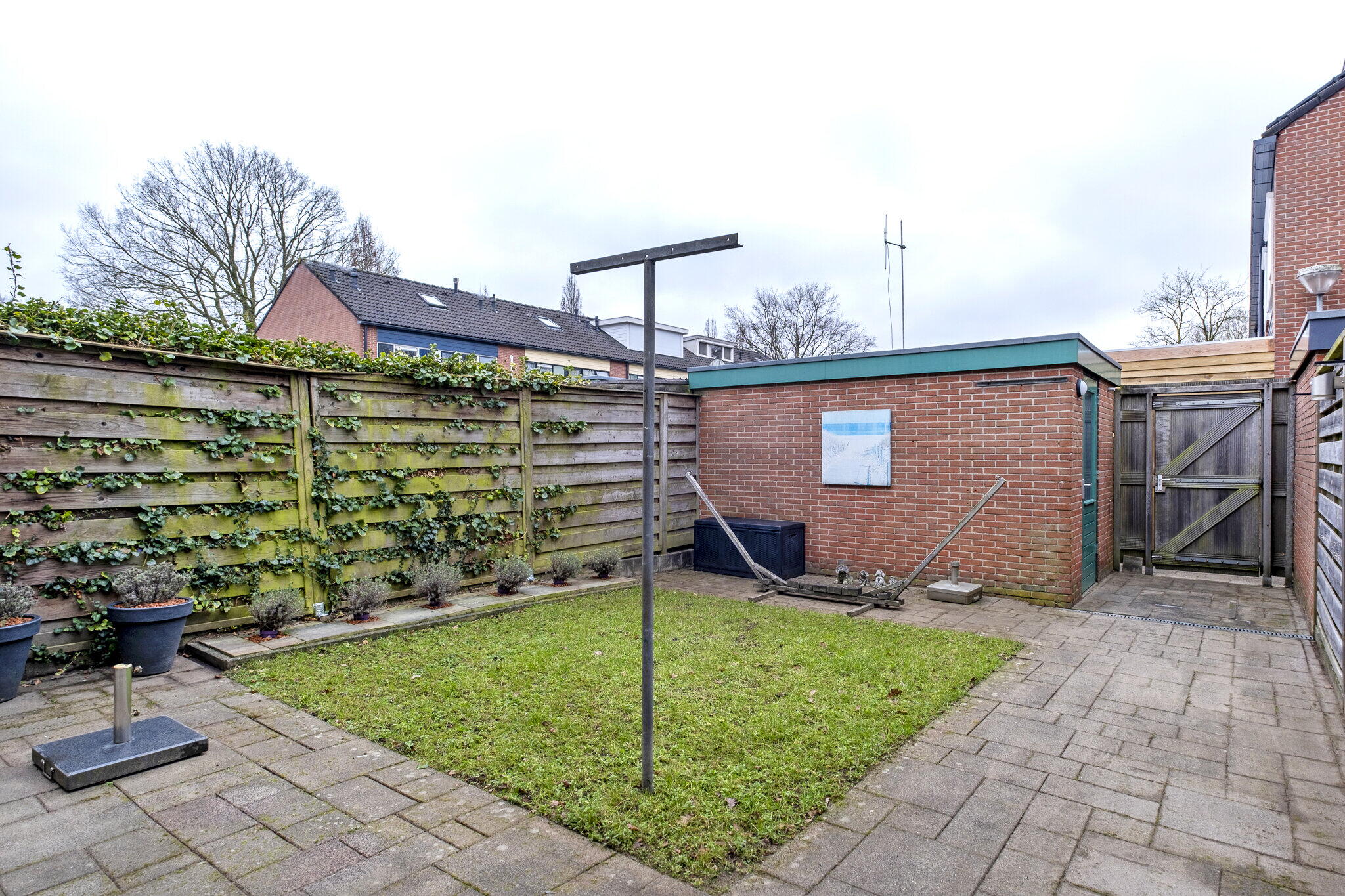 De fijne tuin op het zuidwesten is onderhoudsvriendelijk en beschikt over een stenen berging. Ideaal voor het opbergen van tuingereedschap en fietsen. De woning beschikt over een achterom.